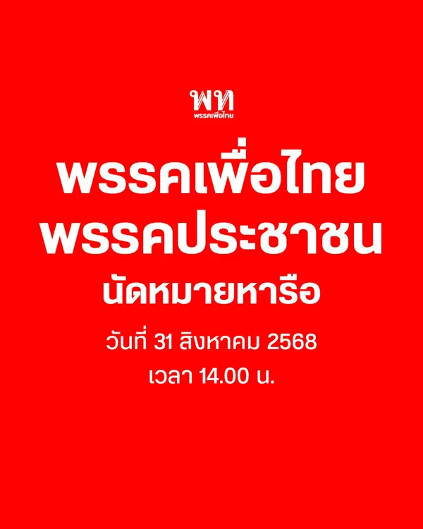 ความเคลื่อนไหวทางการเมืองเข้าสู่จุดสำคัญอีกครั้ง เมื่อพรรคเพื่อไทยประสานงานและนัดหมายหารือกับพรรคประชาชนในวันอาทิตย์ที่ 31 สิงหาคม 2568 เวลา 14.00 น. ณ ที่ทำการพรรคประชาชน โดยมีนายสรวงศ์ เทียนทอง เลขาธิการพรรคเพื่อไทย และนางสาวจิราพร สินธุไพร รองหัวหน้าพรรคเพื่อไทย เป็นตัวแทนเข้าร่วม