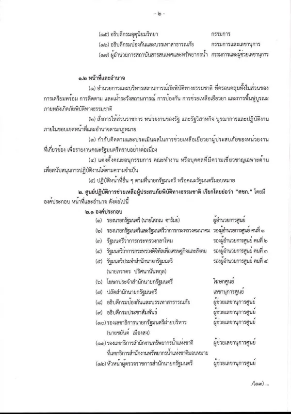 ส่วน ศชภ. มีนายโสภณ ซารัมย์ รองนายกรัฐมนตรี เป็นผู้อำนวยการ ทำหน้าที่บัญชาการกลางและประสานงานทุกภาคส่วน ทั้งหน่วยงานรัฐ เอกชน และท้องถิ่น เพื่อให้ความช่วยเหลือผู้ประสบภัยครบถ้วน ตั้งแต่การเคลื่อนย้ายประชาชน การดูแลชีวิตและทรัพย์สิน การจัดหาอาหาร น้ำดื่ม และเครื่องใช้จำเป็น ตลอดจนจัดที่พักอาศัยชั่วคราวอย่างเพียงพอ