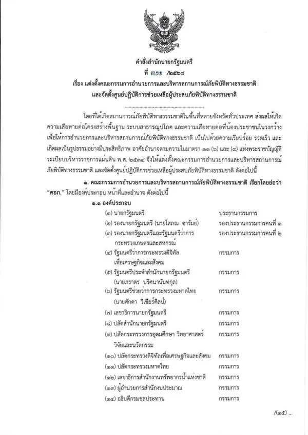 นายอนุทิน ชาญวีรกูล นายกรัฐมนตรี และรัฐมนตรีว่าการกระทรวงมหาดไทย เตรียมเป็นประธานการประชุม คณะกรรมการอำนวยการและบริหารสถานการณ์ภัยพิบัติทางธรรมชาติ (คอภ.) นัดแรกในวันที่ 6 ตุลาคม 2568 หลังมีคำสั่งสำนักนายกรัฐมนตรีที่ 311/2568 แต่งตั้งเมื่อวันที่ 30 กันยายน 2568 เพื่อกำกับ ติดตาม และบูรณาการการช่วยเหลือเยียวยาผู้ประสบภัยอย่างเป็นระบบ