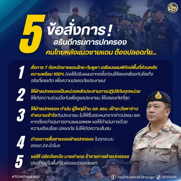 กรมการปกครอง เปิด 5 ข้อสั่งการ อธิบดีกรมการปกครอง คนไทยหลังแนวชายแดน
