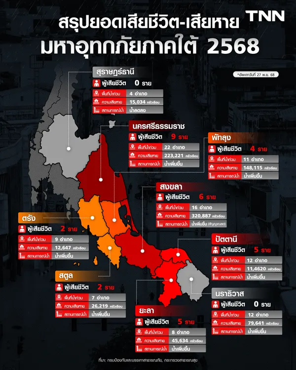 - "น้ำท่วมภาคใต้" อ่วม เศรษฐกิจ Q4 ส่อหลุดเป้า "กูรู" มองฉุดท่องเที่ยว ส่วนภาพรวมปี 69 ฟื้นยาก