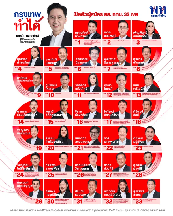 ทั้งนี้ พรรคเพื่อไทย เปิดตัวผู้สมัคร สส. กรุงเทพมหานคร (กทม.) 33 เขต 33 คน "เพื่อไทยทำได้ ทำให้ไทยยิ่งใหญ่ เลือกพรรคเพื่อไทย ทั้งคนทั้งพรรค"