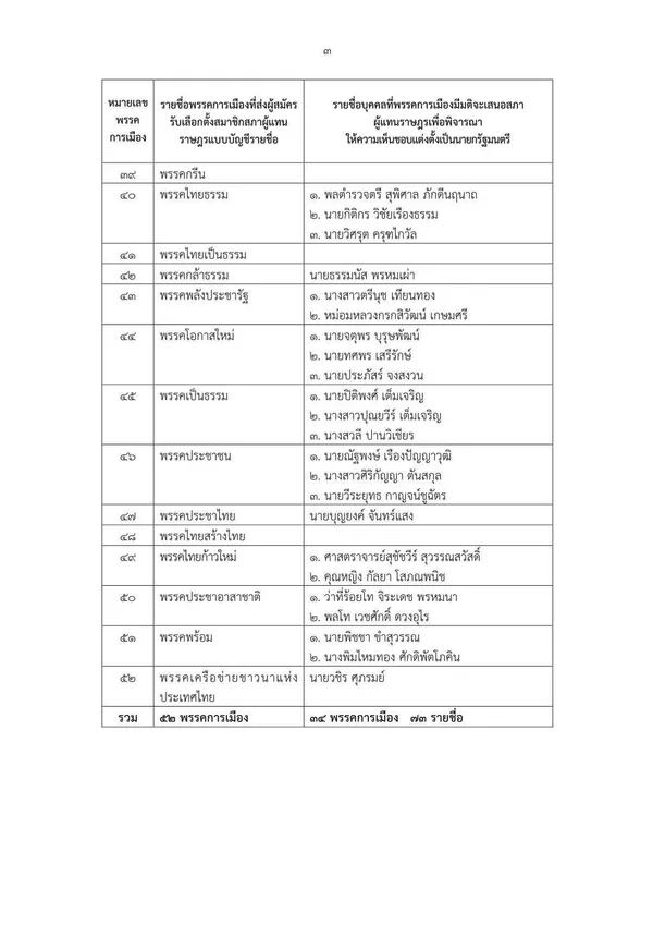 20. พรรคประชากรไทย เสนอชื่อแคนดิเดตนายกรัฐมนตรี 3 คน