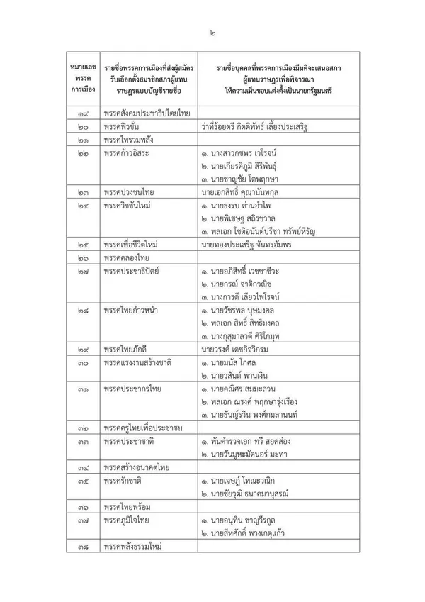 33. พรรคพร้อม เสนอชื่อแคนดิเดตนายกรัฐมนตรี 2 คน คือ