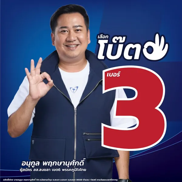 นายอนุกูล พฤกษานุศักดิ์ อดีตรองโฆษกประจำสำนักนายกรัฐมนตรี ผู้สมัคร สส. เขต 6 จ.สงขลา หมายเลข 3 พรรคภูมิใจไทย ลงพื้นที่หาเสียงอย่างต่อเนื่อง เพื่อชูนโยบายของพรรคภูมิใจไทย “พูดแล้วทำ” ทั้งเรื่อง ลดรายจ่ายเพิ่มรายได้ เกษตรกรร่ำรวย ส่งเสริมแหล่งท่องเที่ยวในชุมชน ด้วยกองทุนท่องเที่ยว ที่สำคัญดูแลเรื่องปัญหาน้ำท่วมในพื้นที่ ให้เกิดความยั่งยืน