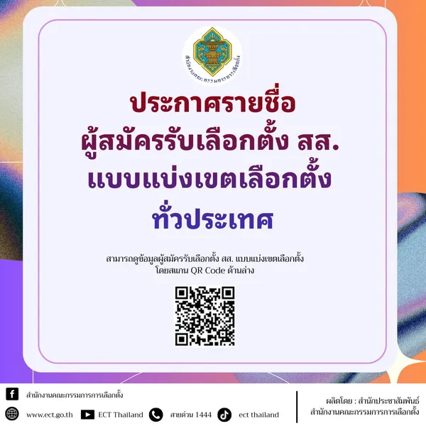 สำนักงานคณะกรรมการการเลือกตั้ง (กกต.) ประกาศรายชื่อผู้สมัครรับเลือกตั้ง สส. แบบแบ่งเขตเลือกตั้ง ทั่วประเทศ