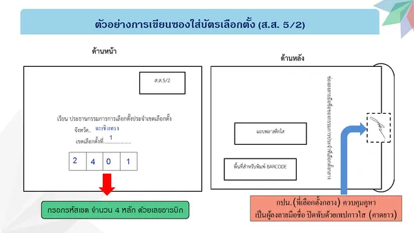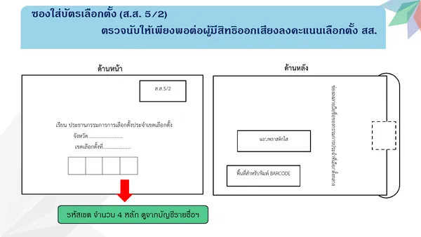 ข้อควรรู้ การเขียนซองใส่บัตรเลือกตั้ง (ส.ส. 5/2) สำหรับการลงคะแนนเลือกตั้ง สส. ล่วงหน้า
