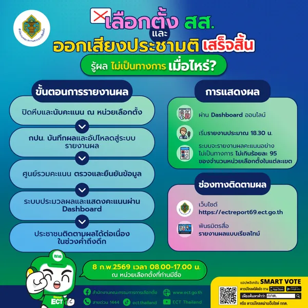 - เมื่อนับคะแนนเสร็จสิ้น กรรมการประจำหน่วยเลือกตั้ง (กปน.) บันทึกผลและอัปโหลดเข้าสู่ระบบ ECT Report 69 โดยมี 3 ขั้นตอนย่อย: