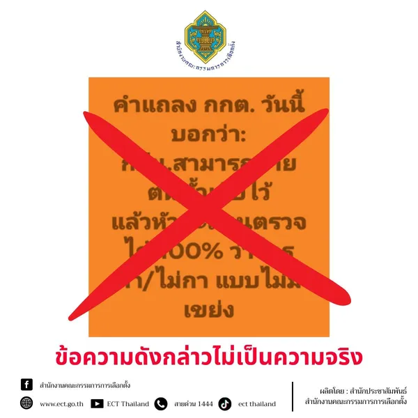 สำนักงานคณะกรรมการการเลือกตั้ง ขอชี้แจงว่า ข้อความดังกล่าวไม่เป็นความจริง