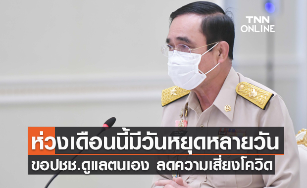 - นายกฯ ห่วงเดือนนี้มีวันหยุดหลายวัน ขอประชาชนมีวินัยดูแลตนเอง