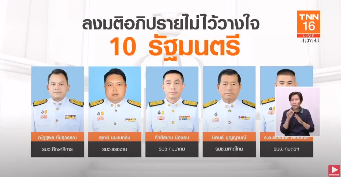 นายสุชาติ ชมกลิ่น รัฐมนตรีว่าการกระทรวงแรงงาน มีคะแนนไว้วางใจ 263 ต่อ212 งดออกเสียง5 ไม่ลงคะแนน 1