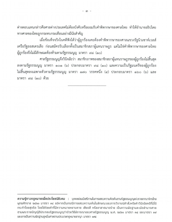 โดยคำวินิจฉัยมีรายละเอียดดังนี้