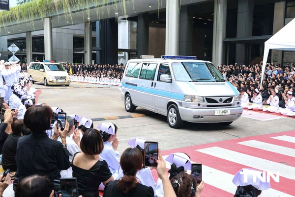 เมื่อขบวนรถเชิญพระบรมศพ เคลื่อนออกจากหน้าอาคารภูมิสิริมังคลานุสรณ์ คณะแพทย์ พยาบาล เจ้าหน้าที่ พร้อมด้วยนิสิตแพทย์ นักศึกษาพยาบาลโรงพยาบาลจุฬาลงกรณ์ สภากาชาดไทย และประชาชน พร้อมใจกันก้มกราบถวายความอาลัย