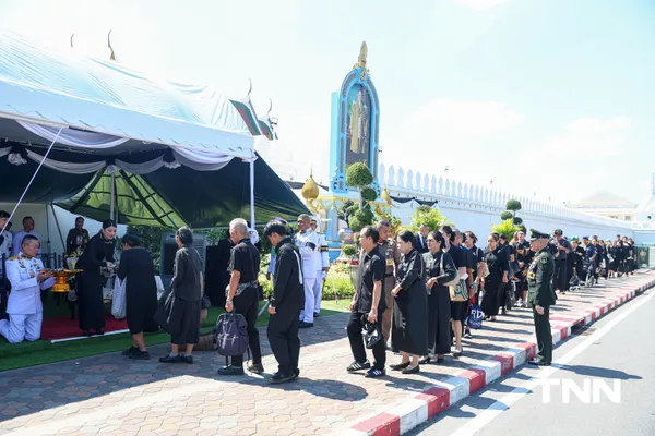 ภายหลังจากที่สมเด็จพระเจ้าลูกเธอ เจ้าฟ้าสิริวัณณวรี นารีตนราชกัญญา ทรงบำเพ็ญพระราชกุศลถวายพระบรมศพ สมเด็จพระนางเจ้าสิริกิติ์ พระบรมราชินีนาถ พระบรมราชชนนีพันปีหลวง ทรงถวายภัตตาหารเพล แด่พระสงฆ์ ณ พระที่นั่งดุสิตมหาปราสาท ในพระบรมมหาราชวัง แล้ว ได้เสด็จไปประทับรถยนต์พระที่นั่ง ไปยังประตูมณีนพรัตน์ ณ แท่นพระบรมฉายาลักษณ์ สมเด็จพระบรมชนกาธิเบศรมหาภูมิพลอดุลยเดชมหาราช บรมนาถบพิตร เพื่อพระราชทานเข็มกลัดโบว์ดำแก่ประชาชนเข้าเฝ้าฯ ถวายความอาลัย สมเด็จพระนางเจ้าสิริกิติ์ พระบรมราชินีนาถ พระบรมราชชนนีพันปีหลวง