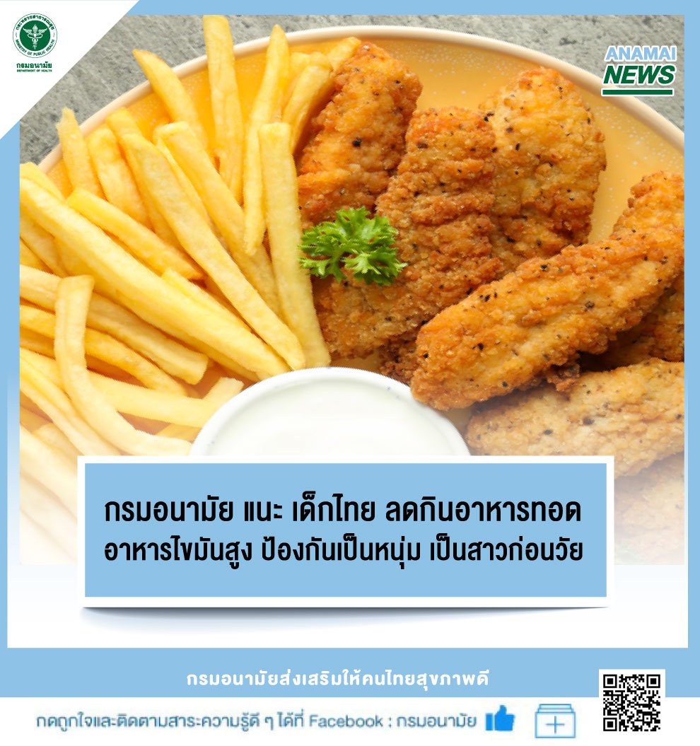 วันนี้ ( 26 ก.ค. 65)นายแพทย์สุวรรณชัย วัฒนายิ่งเจริญชัย อธิบดีกรมอนามัย กล่าวว่า ปัจจุบันเด็กส่วนใหญ่บริโภคอาหารไขมันสูงเพิ่มขึ้น อาหารทอด มัน อาหารจานด่วน ขนมขบเคี้ยว ซี่งเป็นสาเหตุทำให้มีปัญหาโรคอ้วนในเด็กวัยเรียน เด็กอ้วนจะมีปริมาณไขมันสะสมในร่างกายมาก ส่งผลให้เกิดภาวะเป็นหนุ่ม เป็นสาวก่อนวัย