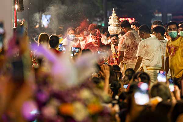 งานแห่ประเพณีประจำปีวัดพระศรีมหาอมาเทวี วันวิชัยทัสมิ (VIYAJA DASMI) ขบวนแห่ออกจากเทวสถานวัดพระศรีมหาอุมาเทวี เวลา 19.30 น.