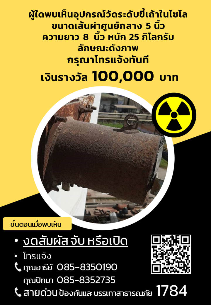 จากกรณีสาร ซีเซียม-137 หายไปจากโรงไฟฟ้า ที่บริเวณร้านรับซื้อของเก่าแห่งหนึ่งในจังหวัดปราจีนบุรี พร้อมกับมีข้อมูลยืนยันว่า ซีเซียมดังกล่าวถูกหลอมไปแล้ว แต่อย่างไรก็ตามพบว่ายังไม่พบการฟุ้งกระจายไปในอากาศ