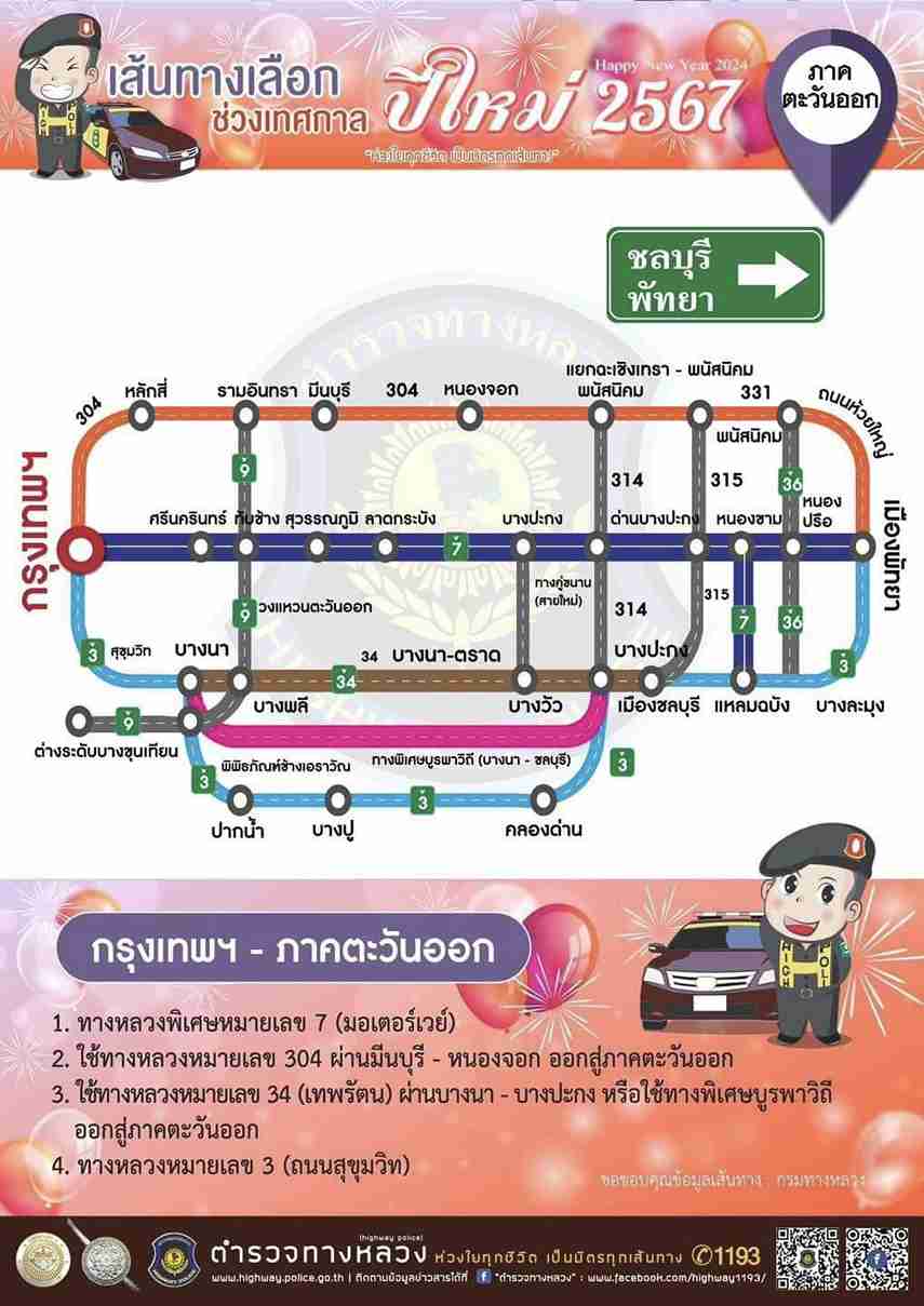 เส้นทางปีใหม่ 2567 เพจเฟซบุ๊ก ตำรวจทางหลวง ได้แนะนำเส้นทางเลือกจากกรุงเทพฯสู่ภูมิภาคต่างๆ ช่วงเทศกาลปีใหม่ 2567 มีครบทั้งหมด 4 ภาค ดังนี้