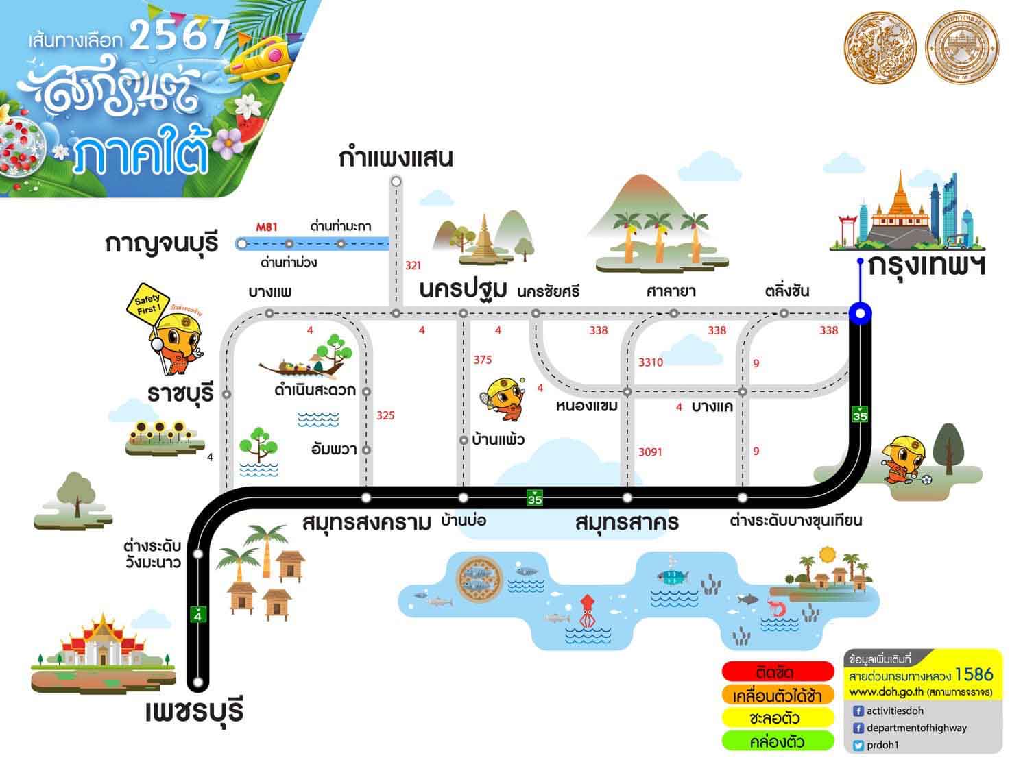 ทั้งนี้ กรมทางหลวงขอความร่วมมือผู้ใช้ทางขับขี่ด้วยความระมัดระวัง ปฏิบัติตามป้ายเตือน ป้ายแนะนำ และคำแนะนำของเจ้าหน้าที่อย่างเคร่งครัด หากประชาชนต้องการสอบถามข้อมูลการเดินทางเพิ่มเติมหรือแจ้งเหตุด่วนเหตุร้ายระหว่างเดินทาง สามารถติดต่อได้ที่สายด่วนกรมทางหลวง 1586 (โทรฟรีทุกเครือข่ายตลอด 24 ชั่วโมง) สายด่วนมอเตอร์เวย์ 1586 กด 7 และตำรวจทางหลวง 1193