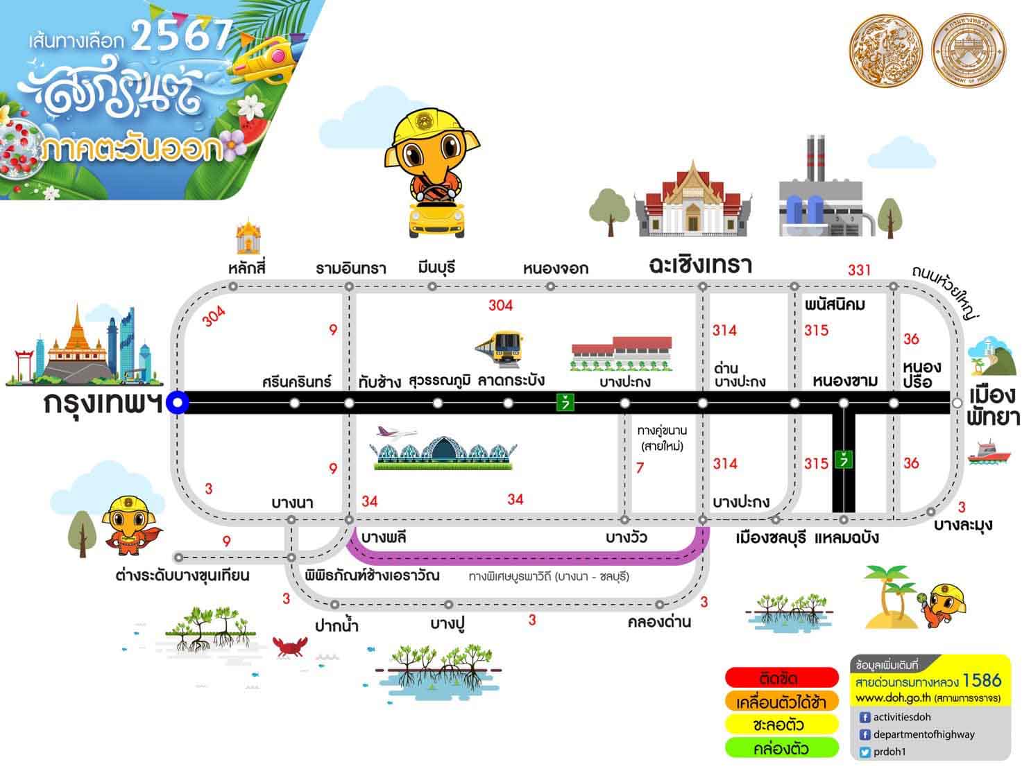 กรมทางหลวงจึงได้แนะนำเส้นทางเลือกบนทางหลวงสายหลักและสายรอง ซึ่งจะช่วยให้ประชาชนวางแผนการเดินทางล่วงหน้าได้เป็นอย่างดี ดังนี้