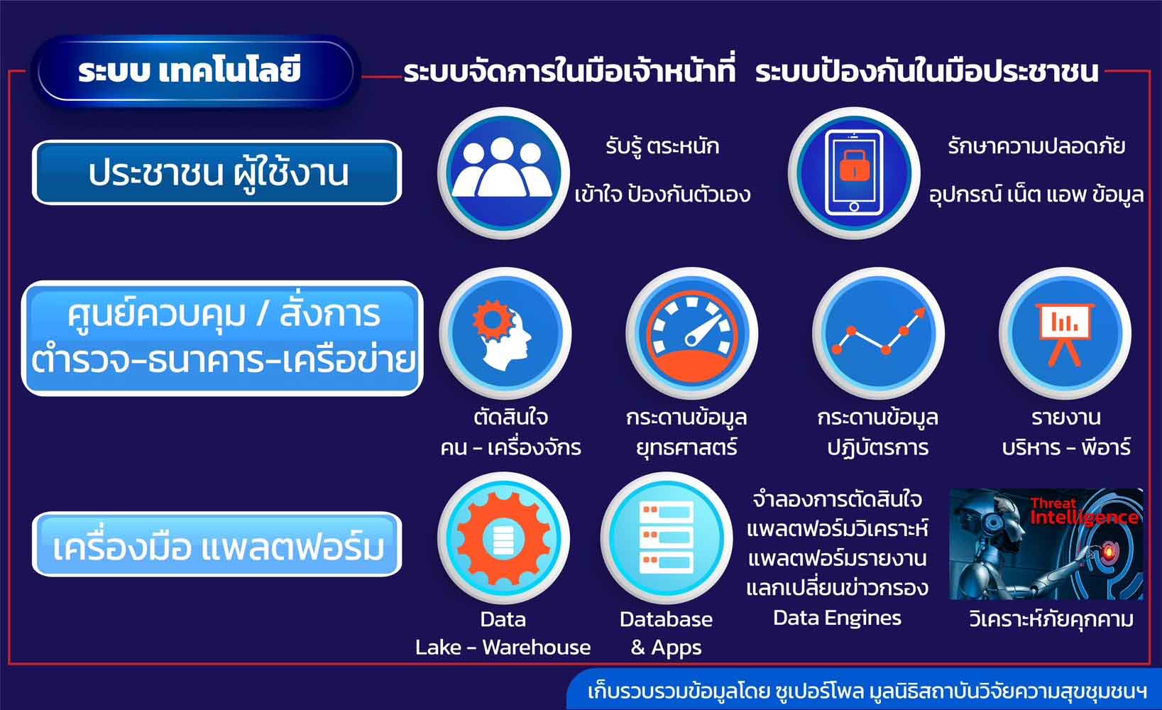 ที่เริ่มจาก ธนาคาร ตัดเส้นทางการเงิน โดยทำร่วมกับตำรวจทั้งตำรวจไซเบอร์/ ตำรวจสอบสวนกลาง (CIB) /สน./สภ. มีแพลตฟอร์มการเปิดคดีที่กระชับใช้เวลาสั้น ๆ เร็วต่อการจัดการขึ้นบัญชีดำกลุ่มมิจฉาชีพออนไลน์ และจัดการแจ้งเตือนไปยังธนาคารและธนาคารสามารถตัดเส้นทางการเงิน ชะลอการไหลของเงินได้ทันทีด้วยหลากหลายวิธี เช่น การยืนยันตัวตนในการโอนเงิน และการจัดการทางเทคนิคต่าง ๆ ที่ธนาคารและเจ้าหน้าที่ผู้ปฏิบัติได้รับความคุ้มครองทางกฎหมายให้ดำเนินการได้จนถึงการปิดคดี