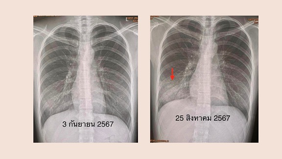 นายแพทย์มนูญ ลีเชวงวงศ์ แพทย์เฉพาะทางด้านโรคระบบการหายใจ โรงพยาบาลวิชัยยุทธ โพสต์ผ่านเฟซบุ๊กรับเคสผู้ป่วยอายุ 29 ปี เข้ารับการรักษาเมื่อวันที่ 25 สิงหาคม 2567 มาด้วยอาการไข้สูง 40.5 องศาเซลเซียส ปวดหัว ปวดตัว อ่อนเพลีย ไอมาก ไม่สูบบุหรี่ ไม่กินเหล้า ไม่มีโรคประจำตัว เคยป่วยเป็นโรคโควิด 2 ครั้ง และไข้หวัดใหญ่ 1 ครั้งเมื่อปีที่แล้ว ตรวจระดับออกซิเจน ร้อยละ 98 ฟังปอดปกติ เอกซเรย์ปอดมีฝ้าขาวที่ปอดข้างขวาด้านล่าง แยงจมูกส่งตรวจ PCR รหัสพันธุกรรม 22 สายพันธุ์พบเชื้อแบคทีเรีย Mycoplasma pneumoniae เจาะเลือดเม็ดเลือดขาวปกติ