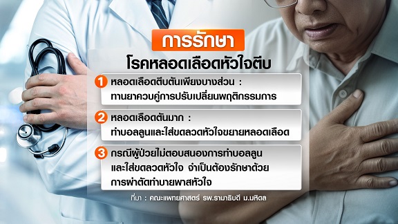 1.หลอดเลือดตีบตันเพียงบางส่วน แพทย์จะพิจารณาให้การรักษาด้วยการใช้ยาควบคู่ไปกับการปรับเปลี่ยนพฤติกรรมการใช้ชีวิตให้เหมาะสมมากขึ้น