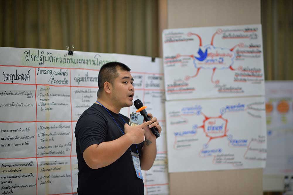 ในช่วงท้ายของการฝึกอบรมเชิงปฏิบัติการ มีการระดมความคิดเห็น และนำเสนอแผนงานที่เกิดจากการเรียนรู้กระบวนการออกแบบโครงการแบบ “Problem-based Design” ในการพัฒนาสื่อปลอดภัยและสร้างสรรค์เพื่อขับเคลื่อนสังคม โดยตัวแทนจากภาคีเครือข่าย เช่น โครงการ “เสียงสะท้อนจากบางระกำ” ที่ต้องการนำเสนอมุมมองที่แตกต่างและผลกระทบในการใช้พื้นที่ อ.บางระกำเป็นพื้นที่รองรับน้ำท่วมขัง หรือ“บางระกำโมเดล” โดยอาจนำเสนอเป็นบทเพลง หนังสั้น หรือสารคดี หรือโครงการ “ล่า ท้า โกง” ที่มีเป้าหมายในการแก้ไขปัญหาของประชาชนในพื้นที่ โดยเฉพาะเด็กและผู้สูงอายุ ซึ่งมักถูกหลอกลวงโดยมิจฉาชีพออนไลน์ หรือคอลเซ็นเตอร์ โดยจะฝึกอบรมเยาวชนมาร่วมกันผลิตสื่อให้เกิดการเท่าทันเล่ห์เหลี่ยมมิจฉาชีพ เป็นต้น