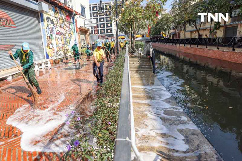 พร้อมเทน้ำหมักชีวภาพเพิ่มจุลินทรีย์ในแหล่งน้ำ ตัดแต่งกิ่งไม้และต้นไม้ ทาสีขอบทางเท้า เช็ดทำความสะอาดป้ายชื่อถนน ป้ายชื่อซอย รั้วราวเหล็ก จัดระเบียบสายไฟฟ้าและสายสื่อสาร ฉีดล้างทำความสะอาดสะพานดำรงสถิต ทางเท้าถนนเจริญกรุง และพื้นที่โดยรอบซุ้มประตูเฉลิมพระเกียรติ 72 พรรษา 28 กรกฎาคม 2567 เพื่อปรับปรุงภูมิทัศน์ให้มีความเป็นระเบียบเรียบร้อย พัฒนาสภาพแวดล้อมให้มีความสะอาดและสวยงาม