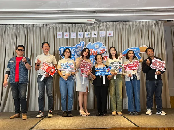 วันที่ 2 เมษายน 2568 สำนักงานกองทุนสนับสนุนการสร้างเสริมสุขภาพ (สสส.) ร่วมกับครอบครัวปลอดบุหรี่ เครือข่ายสร้างเสริมสุขภาพเยาวชน (ขสย.) เครือข่ายลดปัจจัยเสี่ยง มูลนิธิเด็กเยาวชนและครอบครัว และกลุ่มไม้ขีดไฟ จัดกิจกรรมรณรงค์ในเทศกาลสงกรานต์ ภายใต้แนวคิด “บุหรี่ไฟฟ้ามันร้าย” พร้อมเวทีเสวนา “สงกรานต์นี้เลิอกเถอะ…หยุดเอาควันบุหรี่ไฟฟ้าไปฝากคนที่บ้าน” โดยมีการแสดงเจตนารมณ์ร่วมต้านพิษภัยบุหรี่ไฟฟ้า