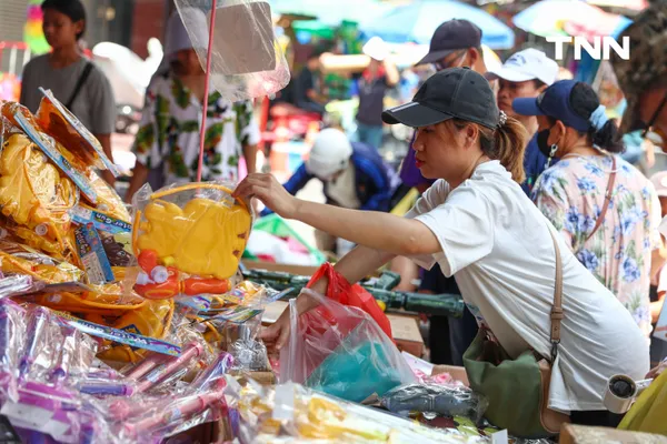 ประชาชนต่างเดินเลือกซื้อปืนฉีดน้ำเพื่อนำไปเล่นในช่วงเทศกาลสงกรานต์ที่กำลังจะมาถึง ซึ่งปืนฉีดน้ำแต่ละคนต่างเลือกซื้อตามความเหมาะสมและความชอบของตนเอง