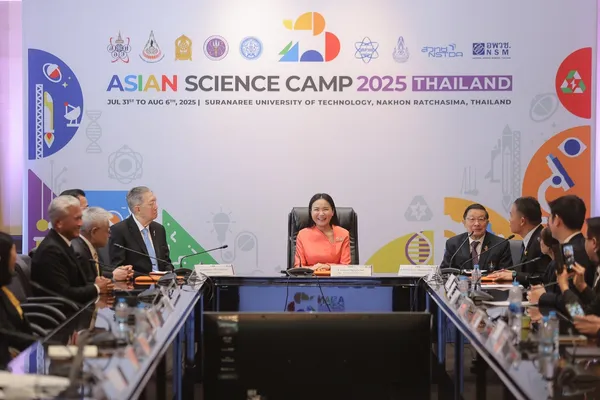 เมื่อวันที่ 4 ก.ค. 2568 เวลา 10.00 น.ที่กระทรวงศึกษาธิการ กรุงเทพมหานคร ศ.ดร.นฤมล ภิญโญสินวัฒน์ รัฐมนตรีว่าการกระทรวงศึกษาธิการ นำแถลงความพร้อมการเป็นเจ้าภาพจัดงาน Asian Science Camp 2025 (ASC2025) ระหว่างวันที่ 31 กรกฎาคม – 6 สิงหาคม 2568 ณ อุทยานวิทยาศาสตร์ภูมิภาค ภาคตะวันออกเฉียงเหนือ 2 และ เทคโนธานี มทส.โดยมีศาสตราจารย์กิตติคุณ นายแพทย์จรัส สุวรรณเวลา รองประธานมูลนิธิ มูลนิธิ สอวน.ศาสตราจารย์เกียรติคุณ ดร. ม.ร.ว.ชิษณุสรร สวัสดิวัตน์ ประธานคณะกรรมการดำเนินงานฯ รองศาสตราจารย์ ดร.อนันต์ ทองระอา อธิการบดี มทส.ศาสตราจารย์ ดร.สันติ แม้นศิริ คณบดีสำนักวิชาวิทยาศาสตร์ และรองประธานคณะกรรมการดำเนินงาน ร่วมแถลงข่าว