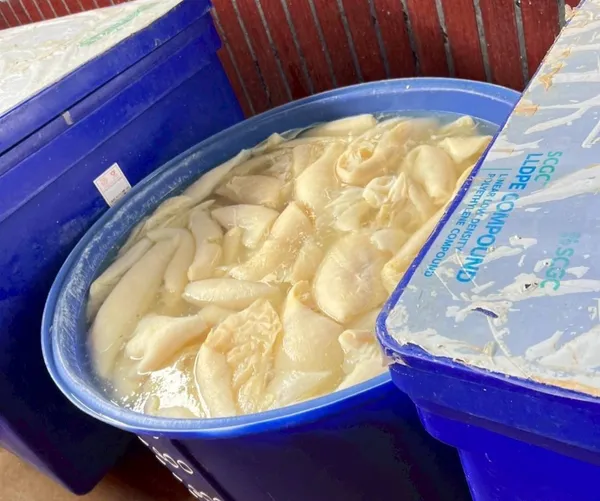 นอกจากนี้ เจ้าหน้าที่ยังพบ ถังพลาสติกบรรจุสารละลายฟอร์มาลดีไฮด์ (ฟอร์มาลีน) จำนวน 9 ถัง อยู่ใกล้ถังน้ำแข็งที่ใช้แช่เครื่องในสัตว์ เมื่อตรวจสอบพบกลิ่นคล้ายฟอร์มาลีนอย่างชัดเจน เสี่ยงเป็นอันตรายต่อสุขภาพผู้บริโภค