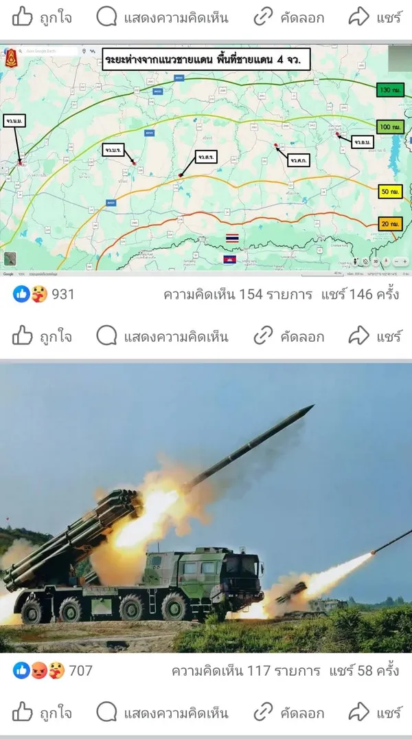 ฝ่ายข่าวกรองแจ้งเตือนว่ากัมพูชาอาจใช้ระบบขีปนาวุธระยะไกล 130 กม. เพื่อยิงเป้าหมายยุทธศาสตร์ของไทย กองทัพจึงได้เตรียมแผนป้องกันและตอบโต้ตามแผนพิทักษ์พื้นที่ส่วนหลัง