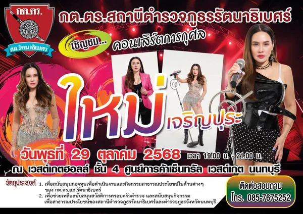คอนเสิร์ตครั้งนี้จะจัดขึ้นในวันพุธที่ 29 ตุลาคม 2568 เวลา 19.00–21.00 น. ณ เวสต์เกตฮอลล์ ศูนย์การค้าเซ็นทรัลเวสต์เกต โดยได้รับเกียรติจากศิลปินชื่อดัง ใหม่ เจริญปุระ ขึ้นแสดงเต็มรูปแบบ เพื่อมอบความสุขแก่ผู้เข้าร่วมงาน