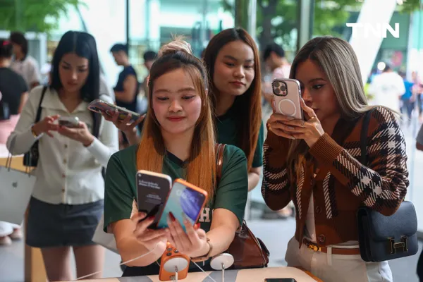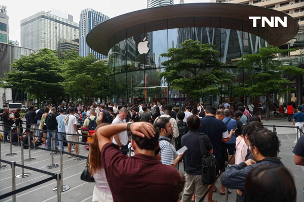 เมื่อเวลา 8.00 น. บรรยากาศการเปิดขาย iPhone 17 วันแรกที่ Apple Store สาขาเซ็นทรัลเวิลด์ เป็นไปอย่างคึกคัก เต็มไปด้วยเสียงเชียร์ของเหล่าสตาฟ Apple Store มีคนมารอคิวอย่างคับคั่ง เป็นทั้งกลุ่มชาวไทยและชาวต่างชาติ และมีทั้งกลุ่มที่สั่งจองล่วงหน้า และ Walk-In มาซื้อหน้าร้าน โดยพบว่ายอดสั่งซื้อล่วงหน้าในปีนี้ เพิ่มขึ้นจากปีที่ผ่านมา เช่นเดียวกับยอดการนำเข้า เพียงแต่การเป็นสินค้าที่จำหน่ายพร้อมกันทั่วโลก เลยมีจำนวนจำกัดอยู่ และจะมีสต็อกทยอยเข้ามาเพิ่มอย่างต่อเนื่อง(เมื่อวันที่ 19 ก.ย.68)