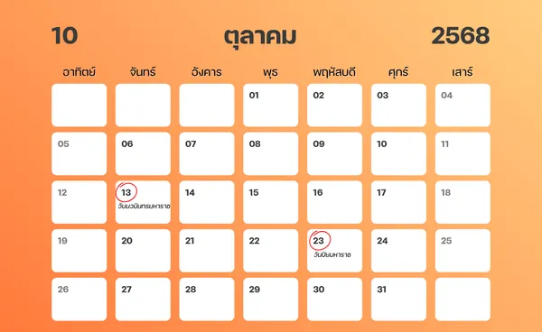 ปฏิทินวันหยุดเดือนตุลาคม 2568