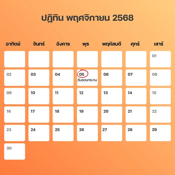 เดือนพฤศจิกายน ถือเป็นเดือนแห่ง “ความอบอุ่นและการขอบคุณ” เป็นช่วงเวลาส่งท้ายปลายปีที่เต็มไปด้วยวันสำคัญ ทั้งของประเทศไทยและระดับสากล ตั้งแต่วันลอยกระทงไปจนถึงเทศกาลขอบคุณพระเจ้า (Thanksgiving) ที่ทั่วโลกต่างรอคอย นับเป็นเดือนที่อบอวลไปด้วยบรรยากาศแห่งความสุข ความสัมพันธ์ และการเริ่มเตรียมตัวเข้าสู่ช่วงสุดท้ายของปี