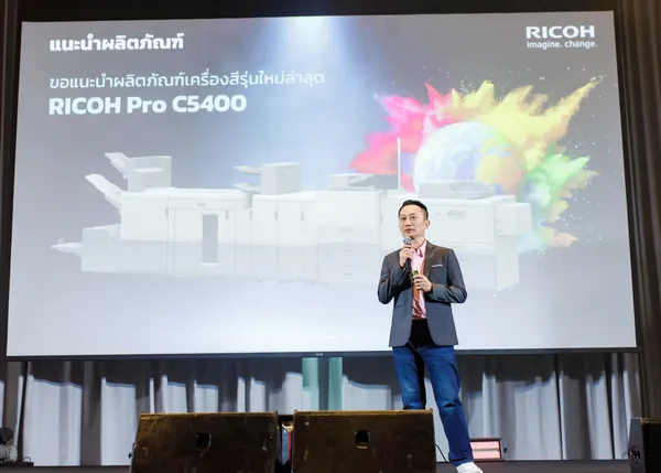 ริโก้เปิดตัวเครื่องพิมพ์ Ricoh Pro C5400S Series ภายใต้แนวคิด “Where Color Meets Perfection” ชูจุดเด่นเรื่องความแม่นยำของสีและความยืดหยุ่นในการผลิต รองรับวัสดุพิมพ์ตั้งแต่ 52.3 แกรมจนถึง 360 แกรม พร้อมความละเอียดสูงสุด 2,400 x 4,800 dpi และฟังก์ชัน Finisher อัตโนมัติที่ช่วยให้การทำงานต่อเนื่องรวดเร็วขึ้น