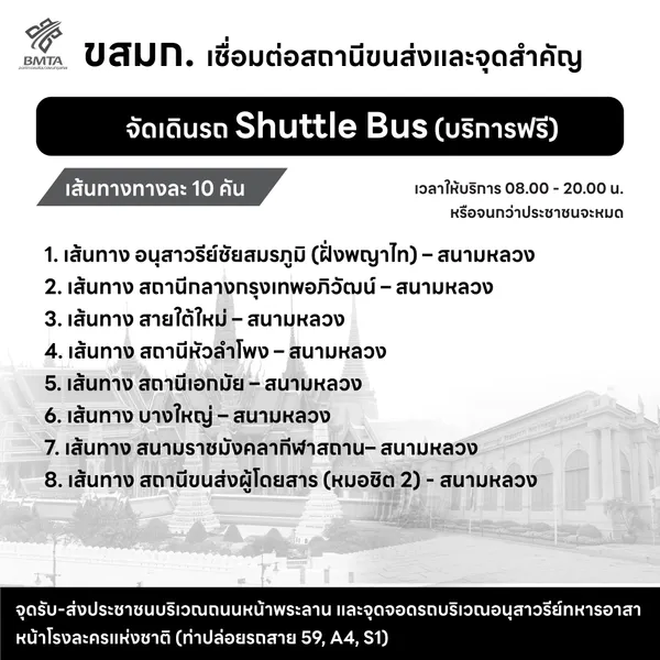 ขสมก. จัดรถเมล์ฟรี 14 เส้นทาง เข้าร่วมถวายน้ำสรงพระบรมศพสมเด็จพระพันปีหลวง