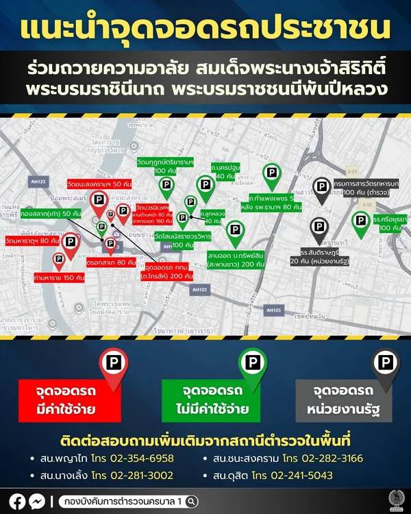 สำหรับประชาชน ร่วมถวายความอาลัย สมเด็จพระนางเจ้าสิริกิติ์ พระบรมราชินีนาถ พระบรมราชชนนีพันปีหลวง ประชาชนสามารถใช้บริการที่จอดรถได้หลายจุดรอบพื้นที่จัดงาน