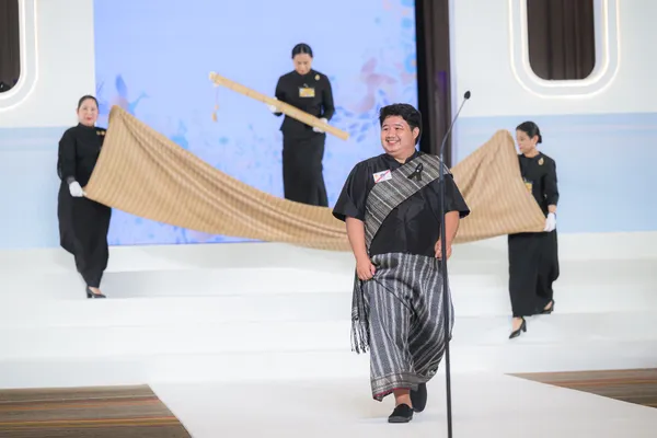 ประเภทที่ 5 ผ้าจก/ผ้าตีนจก ได้แก่ ผ้าจก กลุ่มทอผ้าหัสดินทร์ โดยนายภณพล คิดสำราญ จ.สุรินทร์