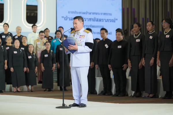 ปลัดกระทรวงมหาดไทย กล่าวสำนึกในพระกรุณาธิคุณและกราบทูลถวายรายงานความโดยสังเขปว่า “ข้าราชการในสังกัดกระทรวงมหาดไทย ตลอดจนประชาชนชาวไทย มีความปีติยินดีที่ได้ร่วมกันแสดงออกซึ่งความจงรักภักดีและสำนึกในพระกรุณาธิคุณที่ สมเด็จพระเจ้าลูกเธอ เจ้าฟ้าสิริวัณณวรี นารีรัตนราชกัญญา ทรงออกแบบผ้าลายพระราชทาน “ผ้าลายสิริราชพัสตราภรณ์” ในโอกาสที่ทรงได้รับการถวายปริญญาศิลปกรรมศาสตรดุษฎีบัณฑิตกิตติมศักดิ์ สาขาวิชาศิลปะการออกแบบพัสตราภรณ์ ประจำปีการศึกษา 2566 จากมหาวิทยาลัยธรรมศาสตร์ โดยทรงนำมาออกแบบต่อยอดให้โครงสร้างลวดลายมีความร่วมสมัยเป็นสากล หากยังคงสื่อถึงเอกลักษณ์อันงดงามของชาติ สะท้อนวิถีชีวิต วัฒนธรรมและธรรมชาติของประเทศไทย โดยพระราชทานผ้าลายพระราชทาน “ผ้าลายสิริราชพัสตราภรณ์” แก่ช่างทอผ้าและช่างหัตถกรรมไทย เพื่อนำไปถักทอผืนผ้าและสร้างสรรค์งานหัตถกรรม ด้วยการผสมผสานกับลวดลายโบราณในทุกภูมิภาคของประเทศ เพื่อเป็นการฟื้นฟูภูมิปัญญาแห่งอดีต ยกระดับมาตรฐาน และเพื่อพัฒนาศักยภาพการสร้างสรรค์ผืนผ้าและงานหัตถกรรมในทุกมิติ ด้วยการออกแบบตามความคิดสร้างสรรค์ของศิลปิน”