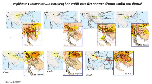 สำหรับพื้นที่ภาคตะวันออกเฉียงเหนือ (จ.อุบลฯ) และภาคกลาง (จ. พระนครศรีอยุธยา) ที่เป็นปลายน้ำ อาจจะมีน้ำท่วมหลายระลอก เนื่องจากจะมีปริมาณฝนตกตามทิศทางการเคลื่อนตัวของพายุจากปลายน้ำไปยังต้นน้ำ (เช่นลุ่มน้ำมูล และลุ่มน้ำชี รวมทั้งลุ่มเจ้าพระยา) ปริมาณน้ำหลากจึงจะไหลกลับลงมาอีกครั้งนะครับ นอกจากนี้ เขื่อนในภาคเหนือ และภาคตะวันออกเฉียงเหนือหลายเขื่อนมีปริมาณน้ำวิกฤตอยู่แล้ว ผู้บริหารเขื่อนต้องบริหารความเสี่ยงสูงสุดนะครับ