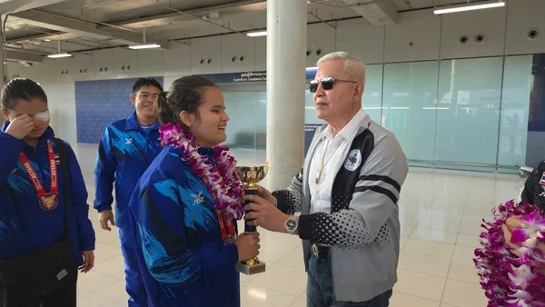 วันที่ 11 พฤศจิกายน 2568 เวลา 06.50 น. ที่ท่าอากาศยานสุวรรณภูมิ จังหวัดสมุทรปราการ นายอำนวย กลิ่นอยู่ นายกสมาคมกีฬาคนตาบอดแห่งประเทศไทย พร้อมคณะผู้บริหารสมาคม ให้การต้อนรับทัพนักกีฬายูโดคนตาบอดทีมชาติไทยทั้งทีมชายและทีมหญิงที่เดินทางกลับจากการแข่งขัน “IBSA Judo Championships 2025” เมืองอัสตานา ประเทศคาซัคสถาน หลังสร้างผลงานคว้า 3 เหรียญรางวัล ได้แก่ 1 เหรียญเงิน และ 2 เหรียญทองแดง