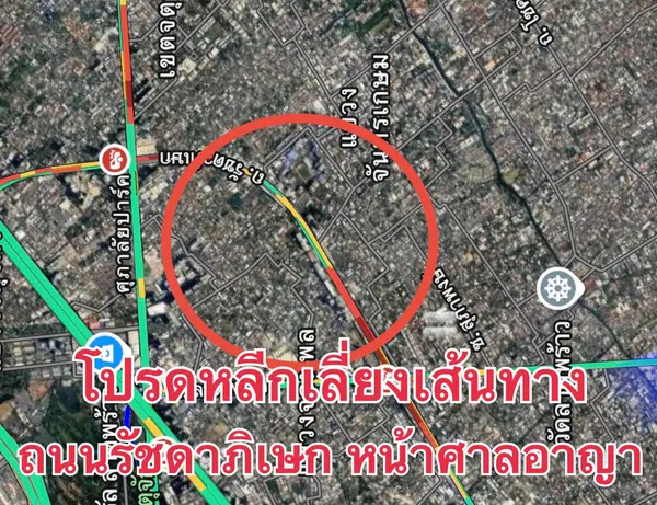 ผู้ใช้เส้นทางมุ่งหน้าแยกสุทธิสารให้หลีกเลี่ยงให้ใช้เส้นทางอื่นทดแทน