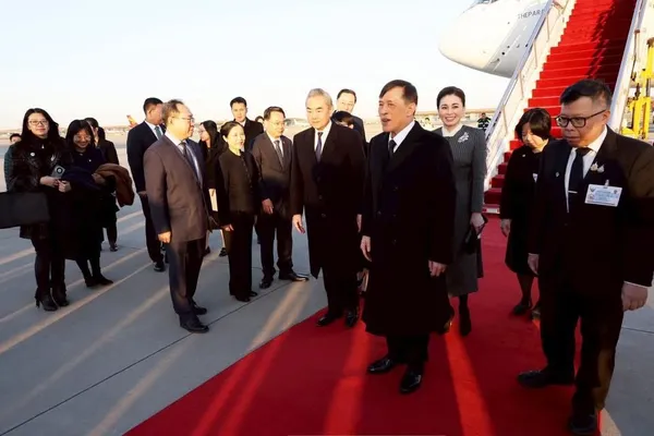 ในพิธีรับเสด็จ นายหวัง อี้ สมาชิกกรมการเมือง และรัฐมนตรีว่าการกระทรวงการต่างประเทศจีน นำคณะผู้บริหารระดับสูงเฝ้ารับเสด็จ พร้อมทั้งมีเด็กชายและเด็กหญิงชาวจีนทูลเกล้าทูลกระหม่อมถวายช่อดอกไม้แด่ทั้งสองพระองค์