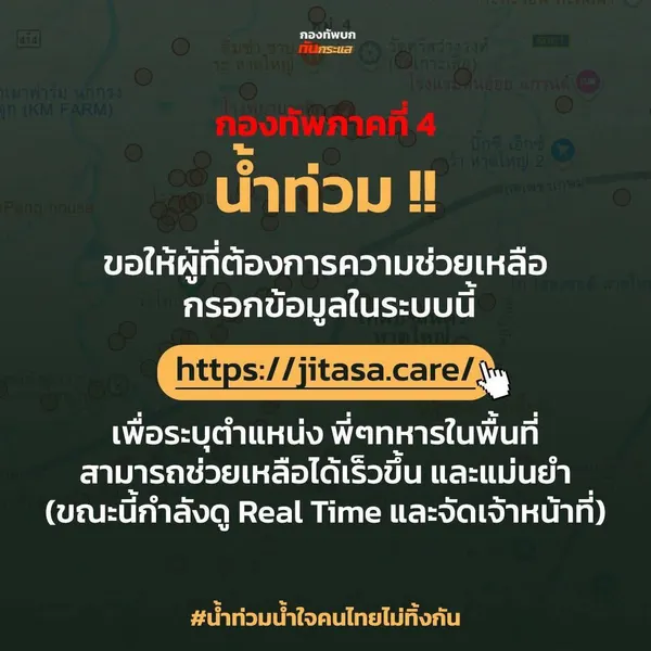 ขอให้ผู้ที่ต้องการความช่วยเหลือเร่งด่วน กรอกข้อมูลในระบบนี้ทันที: https://jitasa.care/