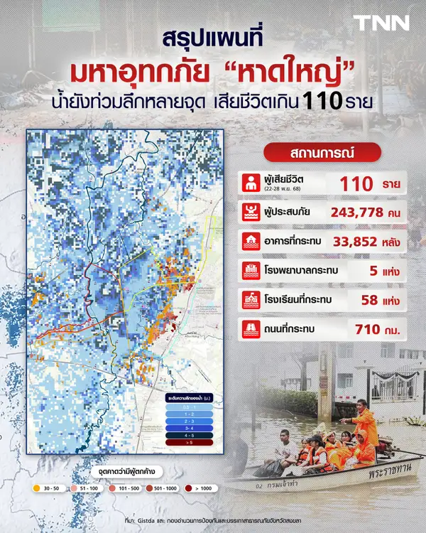 - น้ำท่วมใต้ล่าสุด! ปภ.สรุปสถานการณ์ประสบภัย 9 จังหวัด กระทบ 1.2 ล้านครัวเรือน