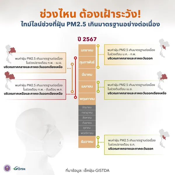 วิเคราะห์ไทม์ไลน์ปี 2567 พบช่วงที่ PM 2.5 พุ่งสูงและเกินค่ามาตรฐาน